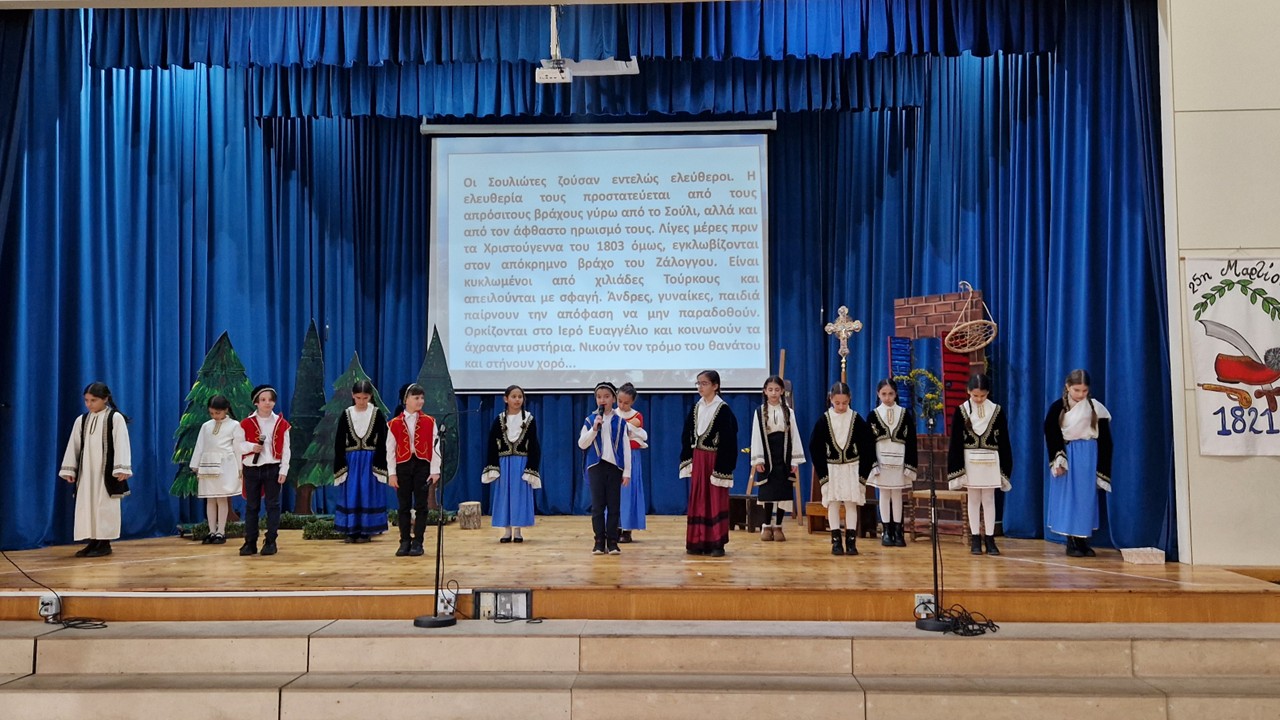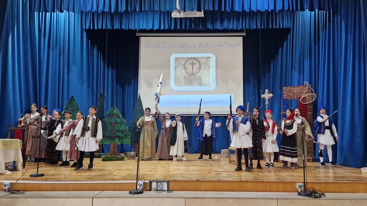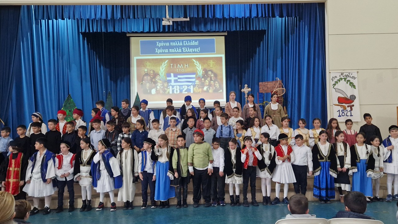 Οι μαθητές των Β'3, Γ'3 και Δ'3 τμημάτων παρουσίασαν στις 23 και 24 Μαρτίου καλλιτεχνικό πρόγραμμα για να τιμήσουν την επέτειο της 25ης Μαρτίου 1821 και τον ξεσηκωμό των υπόδουλων Ελλήνων για ελευθερία ενάντια στον Τούρκο δυνάστη. Το πρόγραμμα παρακολούθησαν όλοι οι μαθητές του σχολείου και οι γονείς των παιδιών που συμμετείχαν.