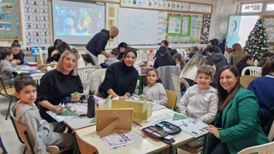 Στις 11, 12 και 15 Δεκεμβρίου οι γονείς και οι μαθητές της Α' τάξης είχαν την ευκαιρία να συμμετέχουν σε ένα δημιουργικό ταξίδι μαθησιακών και καλλιτεχνικών δραστηριότητων, που διοργανώθηκε στις τάξεις των παιδιών, με θέμα τα Χριστούγεννα σε όλο τον κόσμο. Γονείς και μαθητές συνεργάστηκαν για να ανακαλύψουν τα έθιμα των χριστουγέννων σε διάφορες χώρες και παράλληλα ασχολήθηκαν με διάφορες γλωσσικές και καλλιτεχνικές δραστηριότητες.