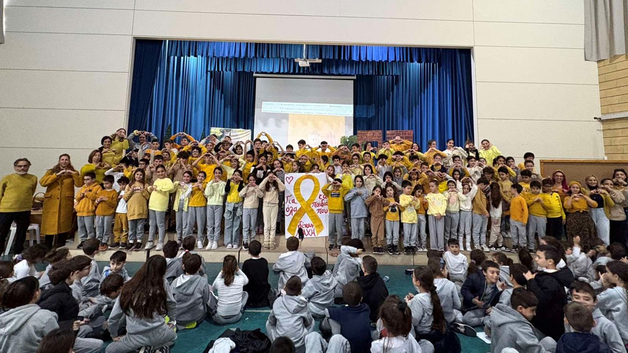 Η 15η Φεβρουαρίου κάθε έτους έχει καθιερωθεί ως η Παγκόσμια Ημέρα κατά του Παιδικού Καρκίνου, τιμώντας όλα τα παιδιά και τις οικογένειές τους που δίνουν την προσωπική τους μάχη αλλά και ευαισθητοποιώντας την παγκόσμια κοινότητα για τις επιπτώσεις της νόσου στα παιδιά. Με την ευκαιρία της ημέρας αυτής μαθητές και εκπαιδευτικοί του σχολείου μας φόρεσαν χρυσοκίτρινο χρώμα και συγκεντρώθηκαν στην Αίθουσα Εκδηλώσεων του σχολείου για να εκφράσουν την υποστήριξή τους στα παιδιά που πάσχουν από τη νόσο και στις οικογένειες. Ομιλία για την Ημέρα κατά του Παιδικού Καρκίνου εκφώνησε ο Β. Διευθυντής του σχολείου μας, κύριος Λεύκιος Δοράτης.