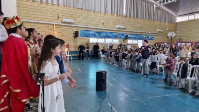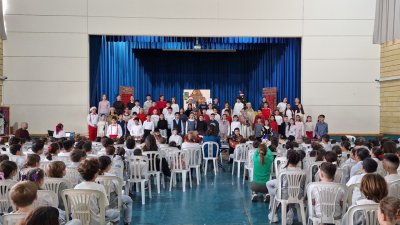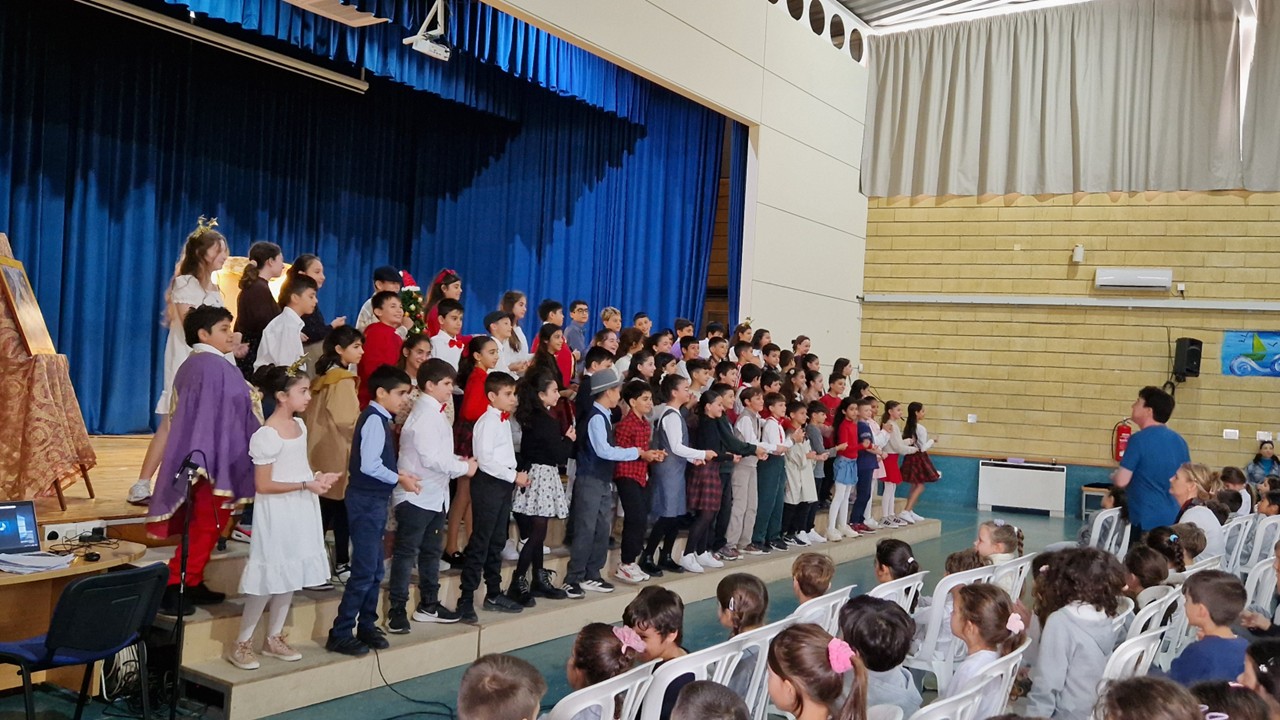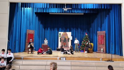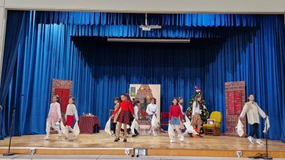 Οι μαθητές της Ε' τάξης παρουσίασαν χριστουγεννιάτικο καλλιτεχνικό πρόγραμμα. Το πρόγραμμα άρχισε με χριστουγεννιάτικα κάλαντα, συνεχίστηκε με το θεατρικό έργο "Ο Άγιος Βασίλης θέλει δώρο" και ολοκληρώθηκε με χριστουγεννιάτικο τραγούδι από όλα τα παιδιά της Ε' τάξης. Το πρόγραμμα παρακόλουθησαν στις 5 Δεκεμβρίου οι μαθητές του σχολείου μας και στις 9 Δεκεμβρίου οι γονείς των μαθητών της Ε' τάξης.