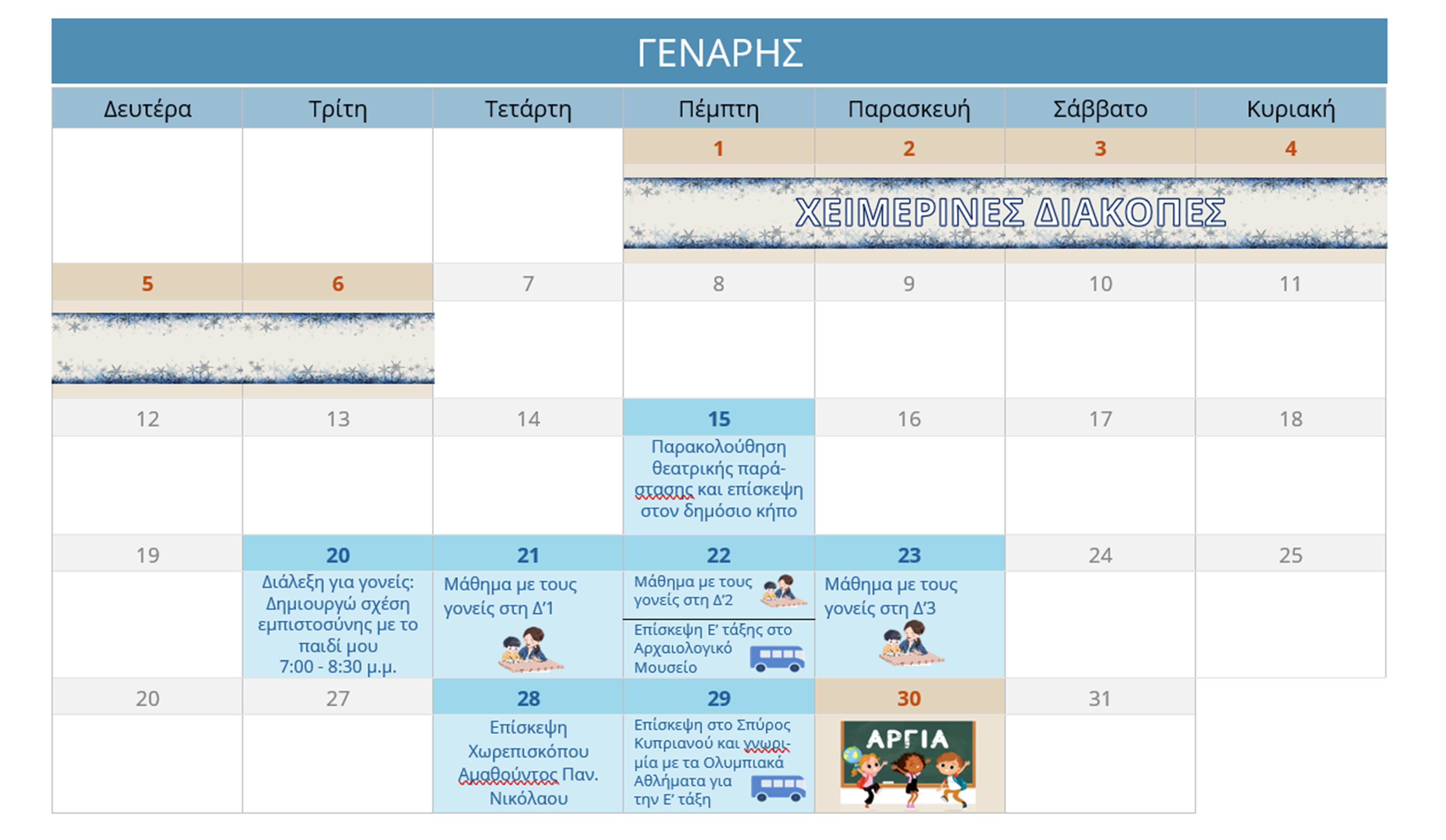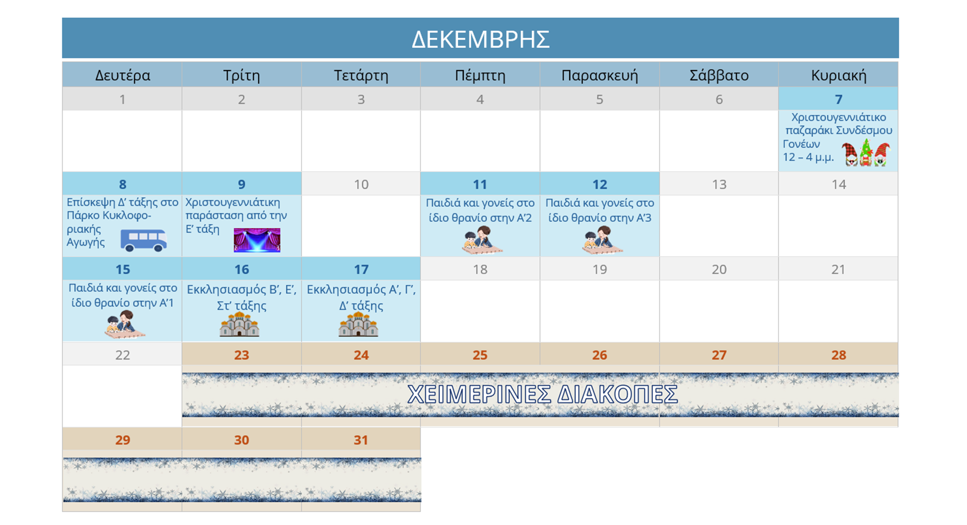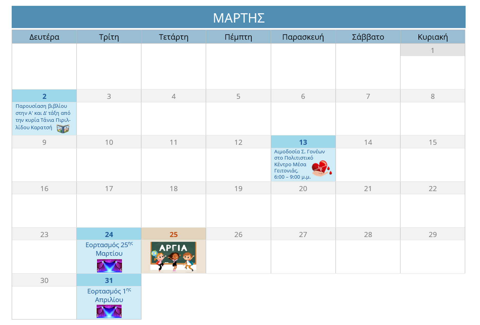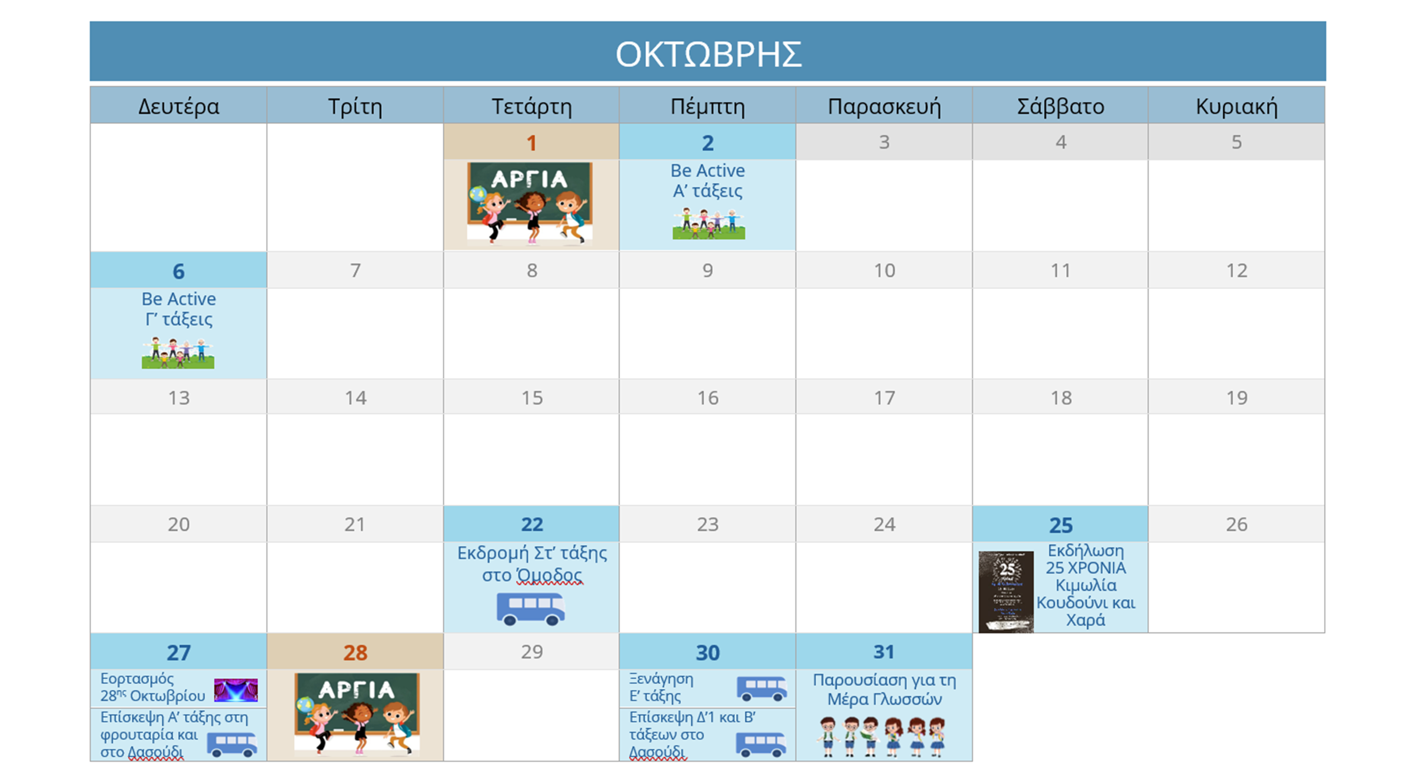 ΗΜΕΡΟΛΟΓΙΟ ΔΡΑΣΤΗΡΙΟΤΗΤΩΝ