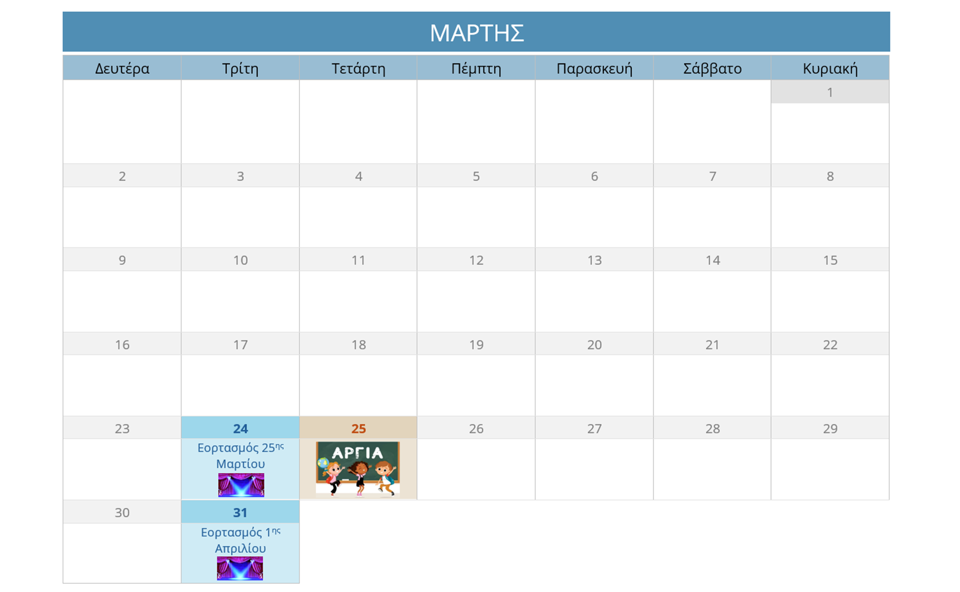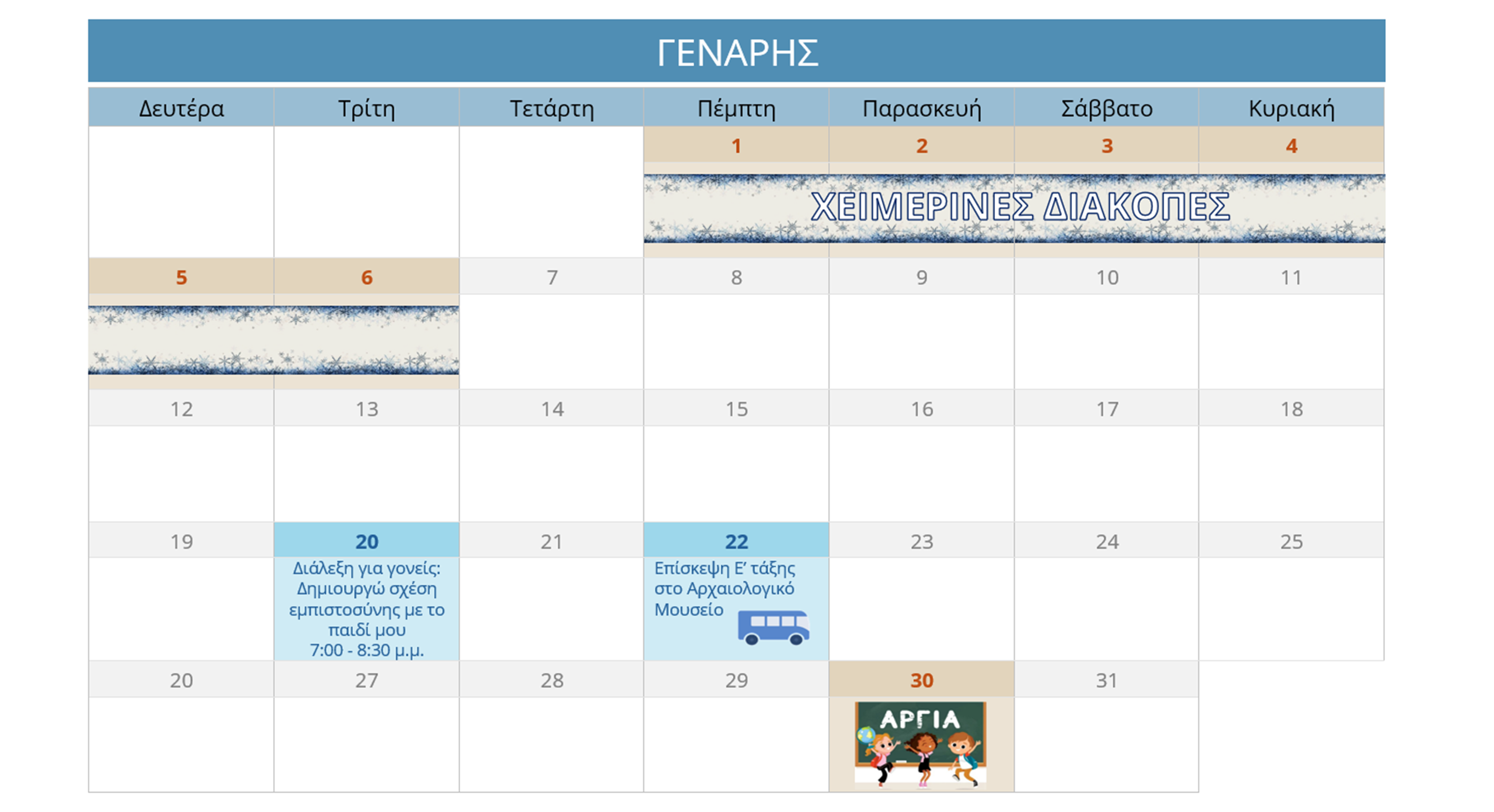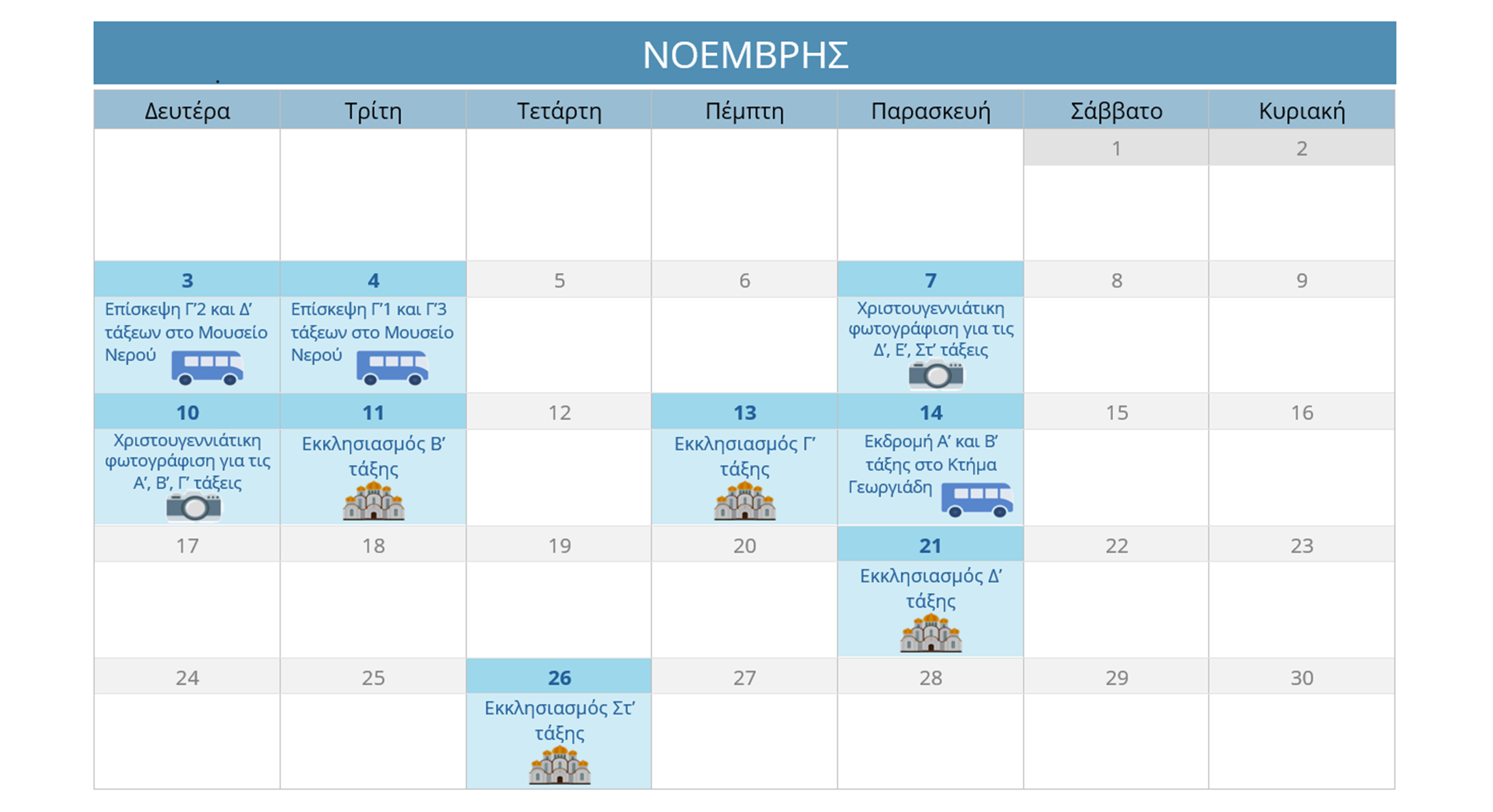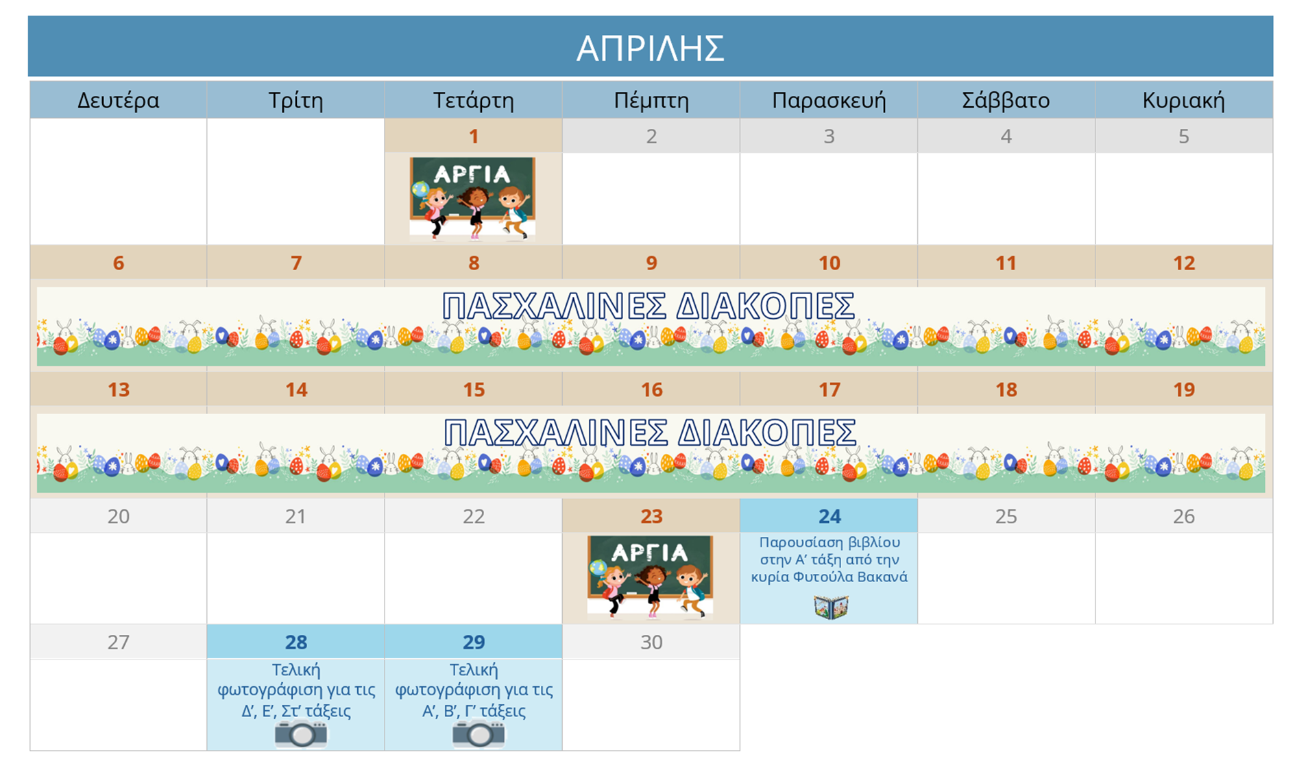 ΗΜΕΡΟΛΟΓΙΟ ΔΡΑΣΤΗΡΙΟΤΗΤΩΝ