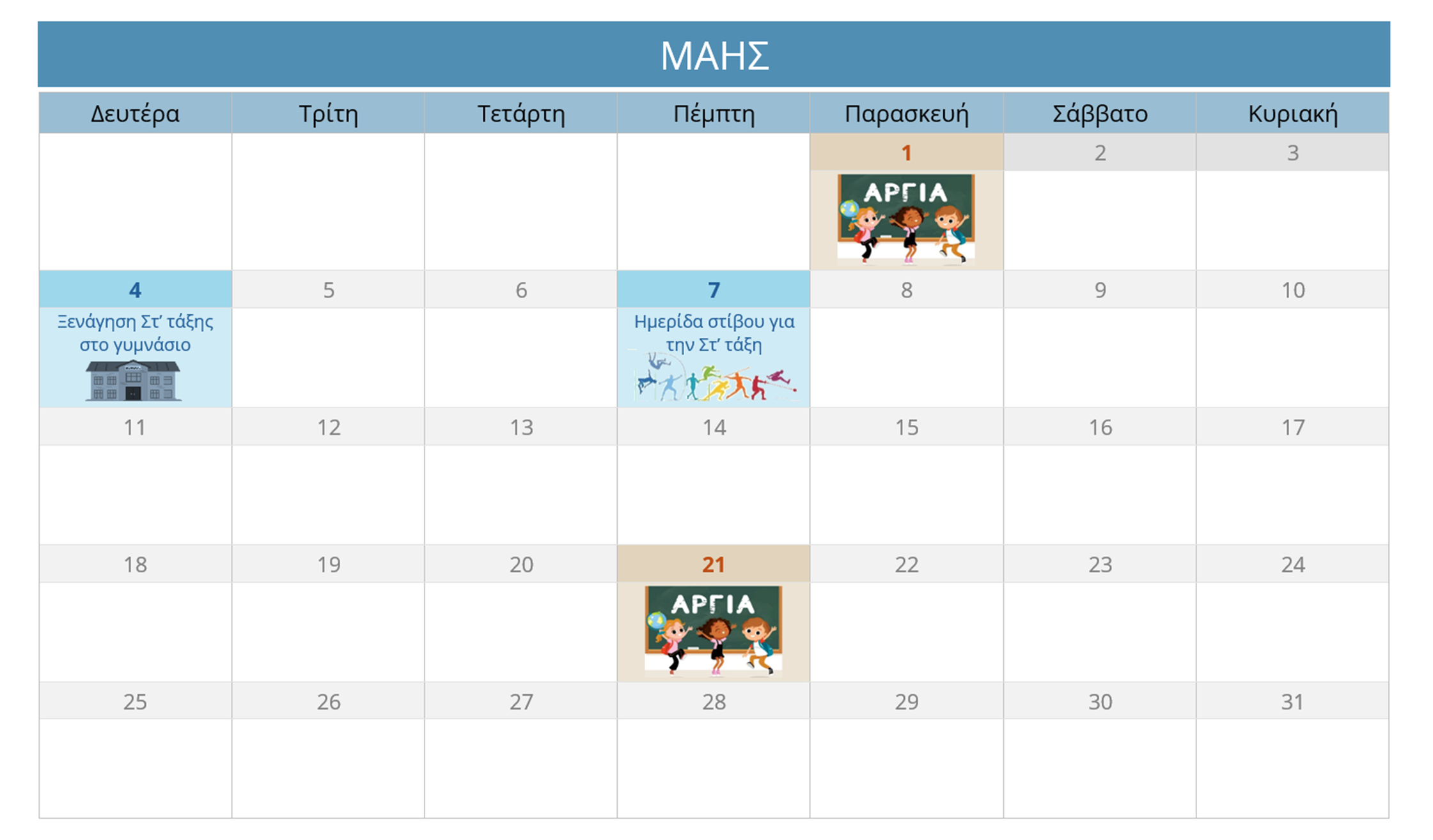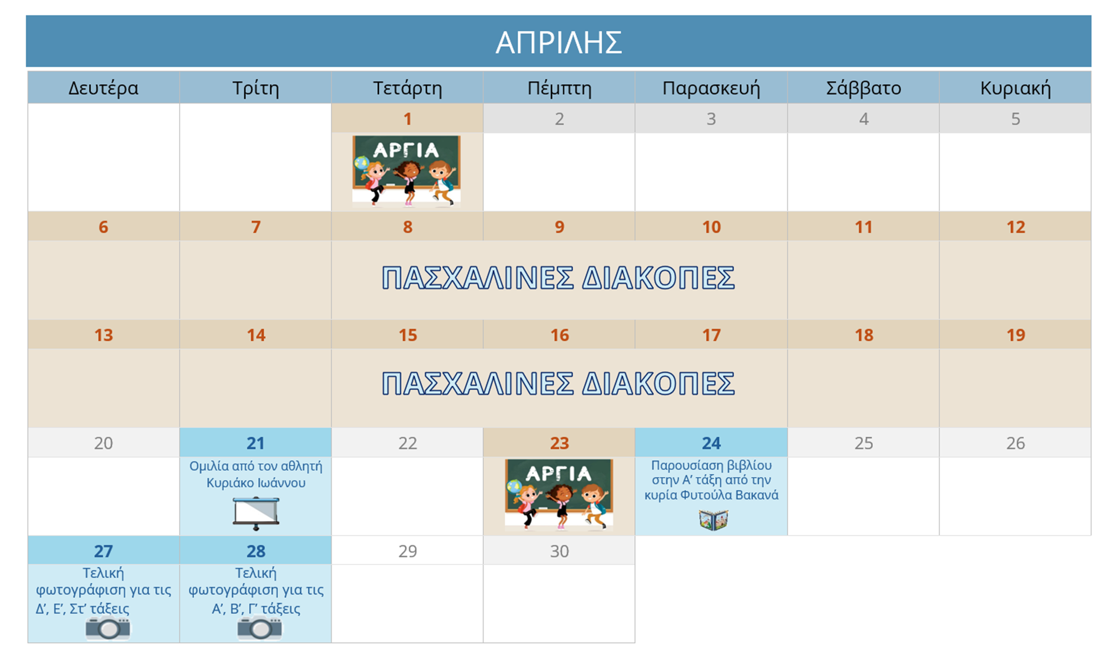 ΗΜΕΡΟΛΟΓΙΟ ΔΡΑΣΤΗΡΙΟΤΗΤΩΝ