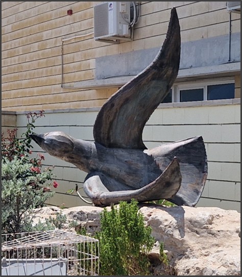 Γλυπτό στην είσοδο του σχολείου, δωρεά από τους Γιαννάκη και Λία Θεοδοσίου εις μνήμην της μαθήτριας Χριστίνας Θεοδοσίου |